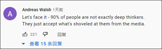 有人无奈感慨:“面对现实吧,90%的人并不是真正深刻的思考者,他们只是在接受媒体灌输给他们的东西”