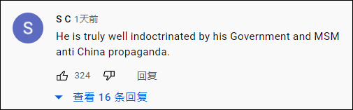 “他确实被他的政府和反中国的宣传灌输得很好。”