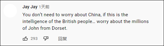 这位观众自称来自英国多塞特郡,名字叫约翰。他说道:“中国马上会接管全世界,这对我们的年轻人来说太可怕了。”