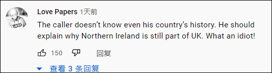 “打电话的人连自己国家的历史都不知道,他应该解释下为什么北爱尔兰仍然是英国的一部分。”