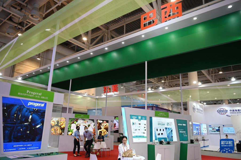 这是2021金砖国家新工业革命展的巴西等展位(9月9日摄)。新华社记者 林善传 摄