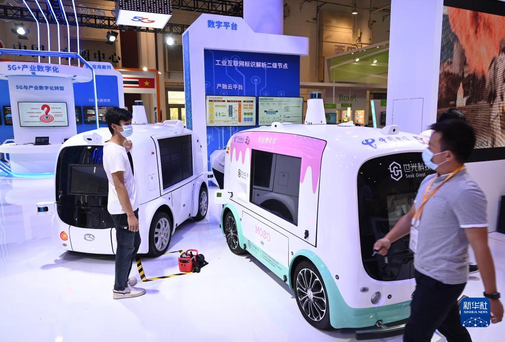 9月9日,中国制造的智能汽车模型在2021金砖国家新工业革命展现场展出。新华社记者 林善传 摄