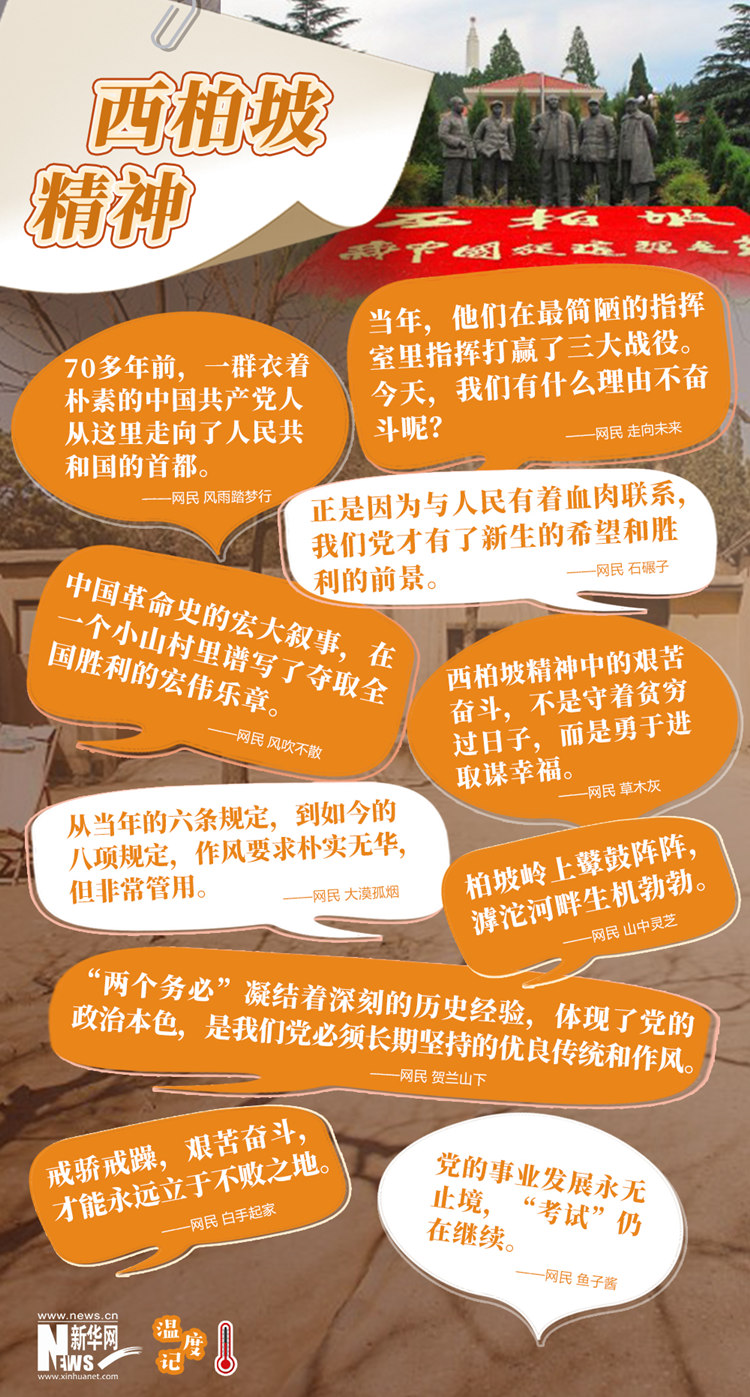 党的事业发展永无止境,“赶考”永远在路上。无论时代条件如何变化,中国共产党为人民谋幸福的初心始终如一。新征程上,牢记初心使命,弘扬西柏坡精神,继续保持谦虚、谨慎、不骄、不躁的作风,继续保持艰苦奋斗的作风,才能使我们的党永远不变质、我们的红色江山永远不变色。(文字:徐可 海报设计:王晔)