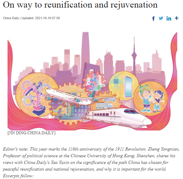 郑永年指出,在过去三个世纪里,全世界经历了三次重大革命。 他认为,如果把英国革命看作工业革命、法国革命看作政治革命、俄国革命看作社会革命的话,中国的革命是就是三场革命的综合革命,既是一场经济革命,又是一场政治革命,也是一场社会革命。这也解释了为什么在中国共产党的领导下,中国实现了快速发展的奇迹。
