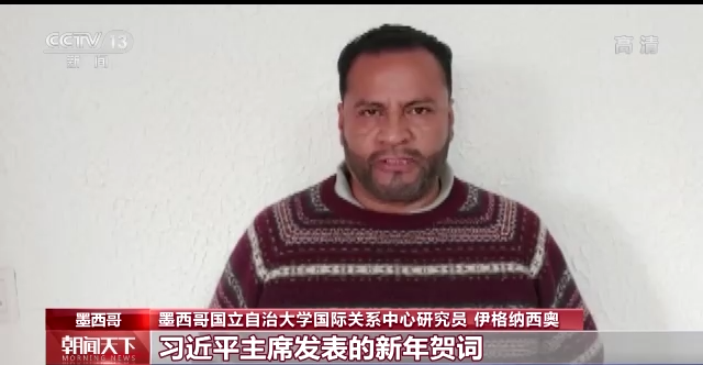 墨西哥国立自治大学国际关系中心研究员 伊格纳西奥:习近平主席发表的新年贺词,我认为非常值得讨论。第一方面肯定是习近平主席对中国人民福祉的良好祝愿,第二方面是中国为全球疫情防控所作的贡献。