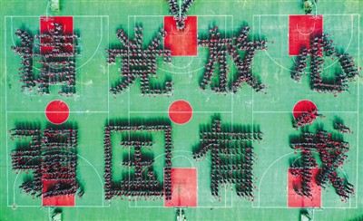 2021年9月1日,广西梧州商贸学校2000多名新生在操场上摆成“请党放心,强国有我”字样和心形图案。何华文摄(人民视觉)