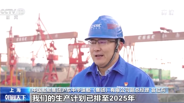 这是中国船舶沪东中华长兴造船基地的一号船坞。2021年,中国船舶集团手持近百艘大型集装箱船的订单,截至目前,16艘船已经进入生产建造阶段。