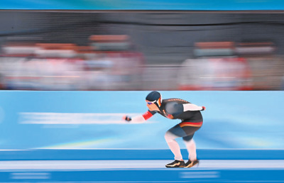 在女子3000米赛道上,当22岁的中国选手阿合娜尔阿达克冲过终点,在她身后,将近五旬的德国选手克劳迪娅佩希施泰因咬紧牙关、甩开手臂,依然奋力向前滑行。