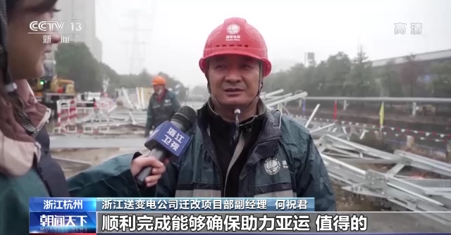 浙江送变电公司迁改项目部副经理 何祝君:这几天都有夜班,抢一点进度出来,顺利完成能够确保助力亚运,值得的。