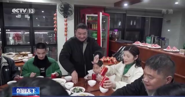 为让300多名工人在春节期间安心施工,施工方还提前请来了部分队员家属到工地过年。