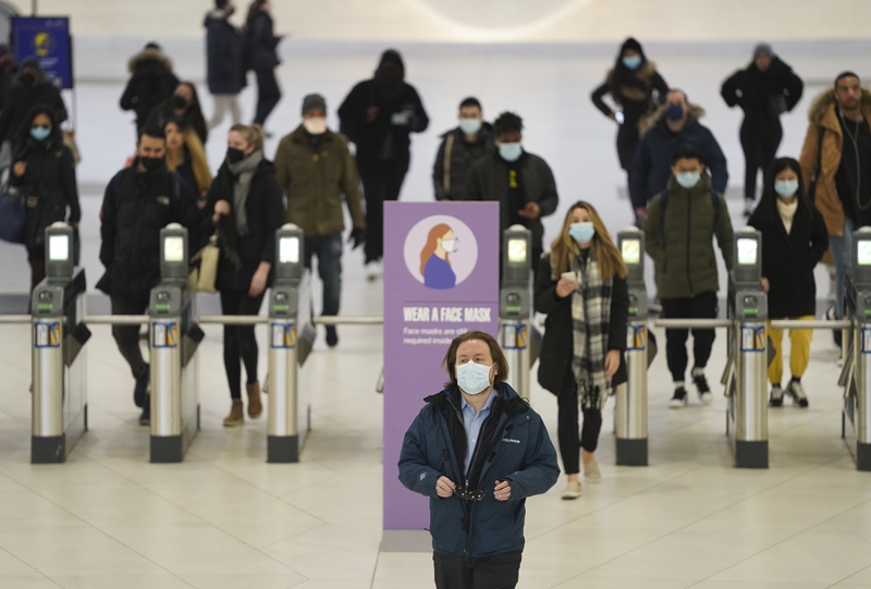 ↑3月29日,人们从美国纽约世贸中心车站内的防疫提示牌旁走过。新华社记者 王迎 摄