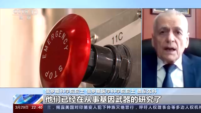 俄罗斯科学院院士、医学科学院院士 奥尼先科:因为美国从来没有禁止过进攻性的生物和细菌武器的军事研发。我认真分析过美国国防部下属两个科研机构正在从事的事情,他们已经在从事基因武器的研究了,美国国防部相关机构直接指挥这300多个位于海外的生物实验室,所有研究经费都来自国防开支,而不是民用项目的开支。因此,这些研究很明显带有军事目的,他们可不是在研究如何保护乌克兰孩子们的健康,而是进攻性的军事项目,其他国家也应该对此感到担忧。