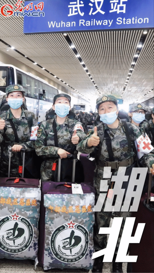 4月7日,解放军中部战区驻湖北武汉军队抽450余名医护人员,驻豫某部990医院150名医护工作者乘坐G600次高铁列车前往支援上海,参加上海疫情防控工作。据悉,湖北援沪医疗队第一批1000余人方舱医疗队和200余人核酸检测队已于4月3日抵达上海。(图片来源:光明图片 摄影:赵军)
