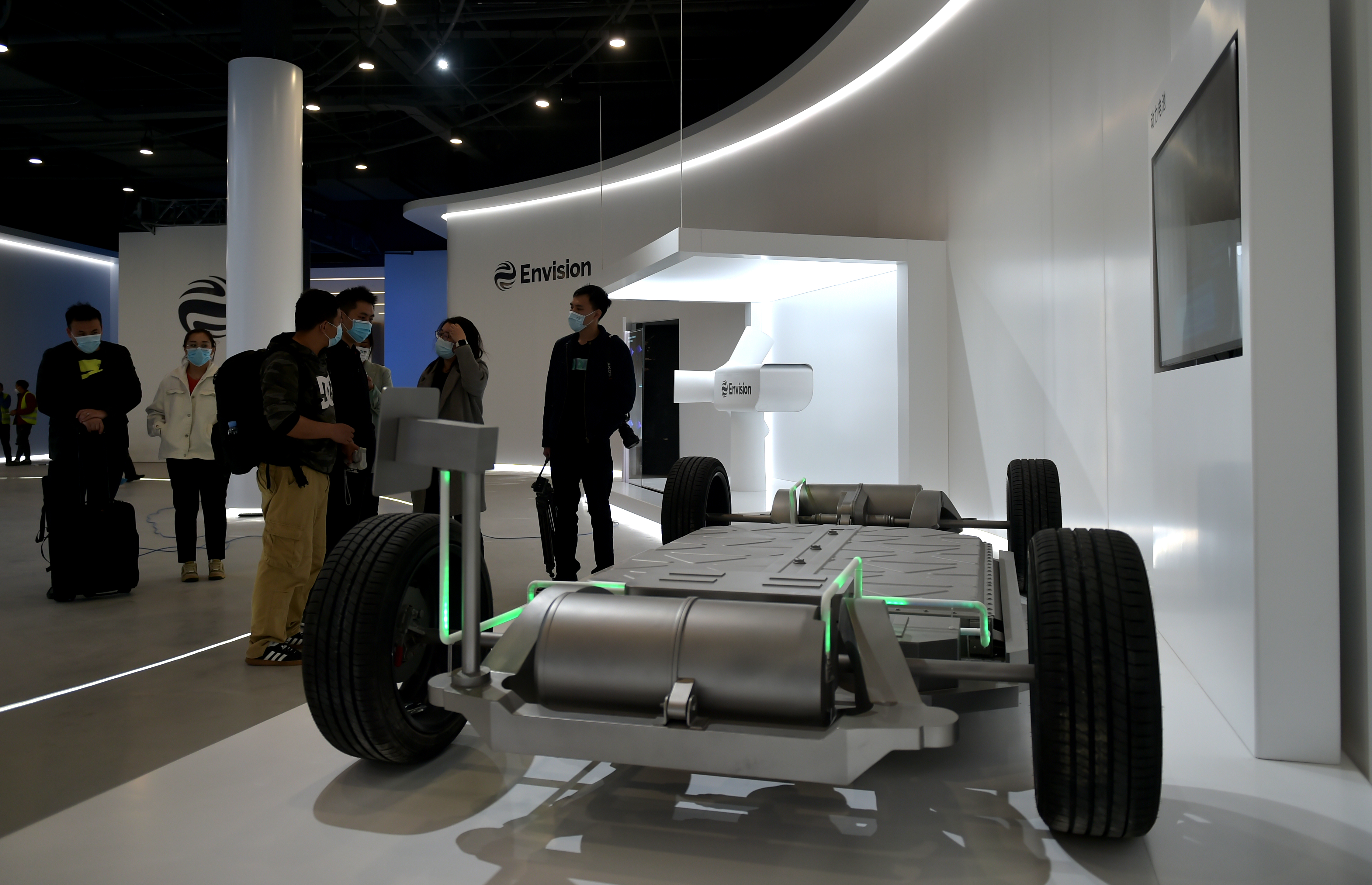 远景现代能源装备制造项目园区的动力电池展示。记者 马建荃 摄