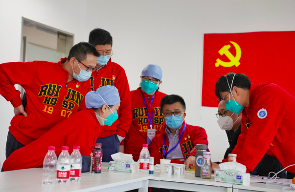 瑞金医疗队临时党支部书记、瑞金医院副书记、副院长毕宇芳介绍,从设计优化、流程建立、细节完善到改进项目的落实,倾注着每个人的智慧与力量,管理团队成员主要来自于瑞金医院,21名成员中党员有13名,占比超过六成。为了加速推进国家会展中心方舱医院的建设,尽早收治新冠病毒感染者,各方全力以赴、日夜赶工,力争今天能实现首批收治。