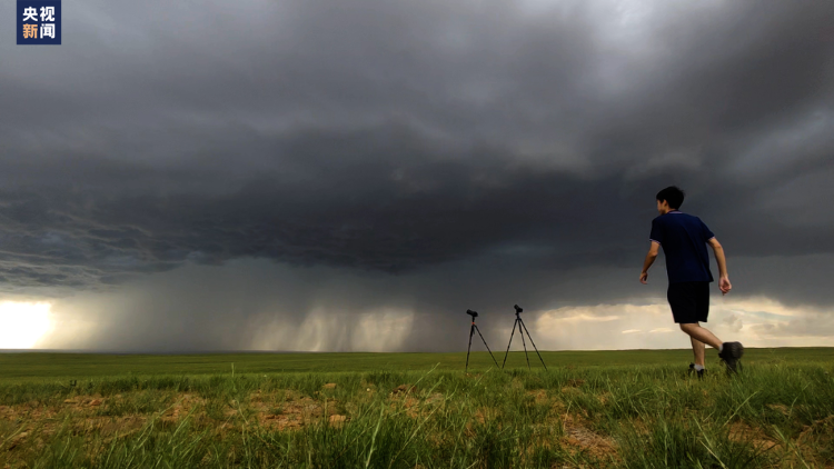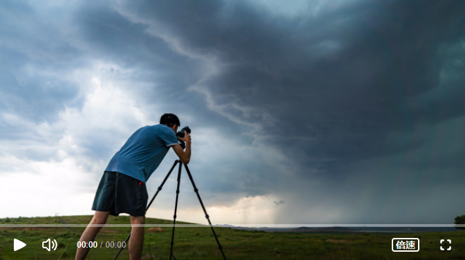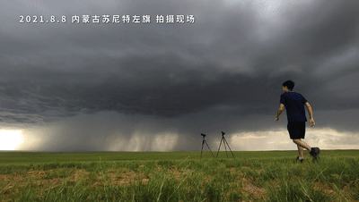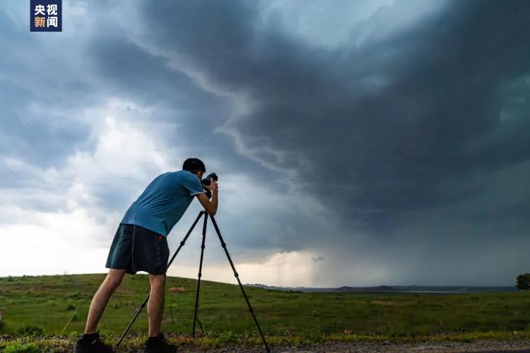 △刘屹靖在内蒙古通辽“追风暴”每次,刘屹靖都带着50斤重的摄影器材,抵达距离拍摄风暴的最佳目的地后,架好设备,全神贯注等“风”来。他告诉总台记者,“追风暴”要争分夺秒,自己几乎没有和“风暴”合过影,仅有的几张“合影”还是司机帮忙抓拍。