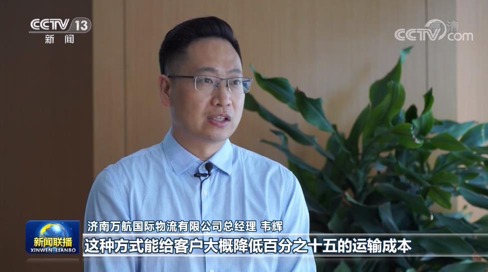 山东济南万航国际物流有限公司总经理 韦辉:这种方式呢,能给客户大概降低15%的运输成本,最快的方式大概能实现三个多周这么一个周期。