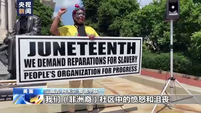 去年6月,美国正式将6月19日定为联邦公共假期。每年这一天前后,全美多地都会举行活动呼吁种族平等。当地时间17日,在新泽西州纽瓦克举行的示威活动要求对被“奴隶制”伤害的非洲裔美国人作出赔偿。
