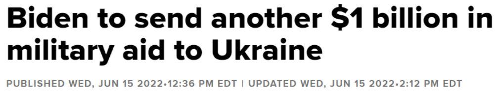 当地时间15日,美国总统宣布再对乌提供10亿美元军援。