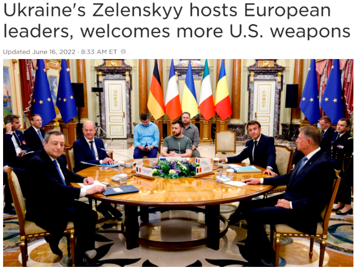 法国、德国、意大利和罗马尼亚四国领导人当地时间16日访问乌克兰,讨论向乌克兰提供更多武器等问题。