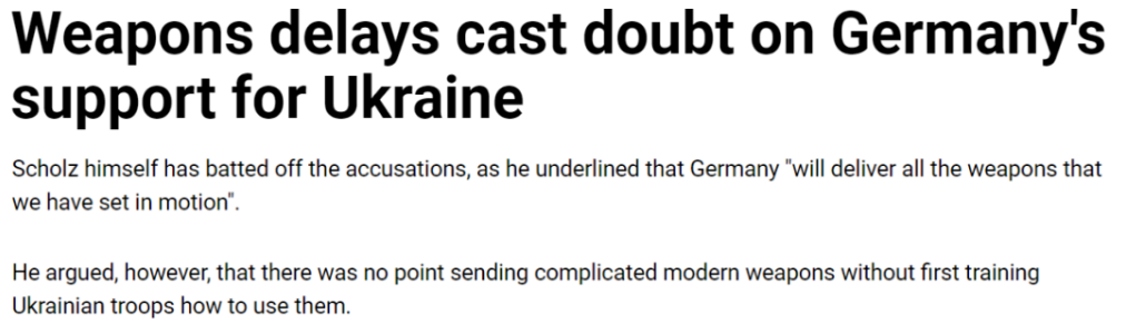 德国总理朔尔茨解释说,需要更多时间培训乌方军人学会使用上述武器。