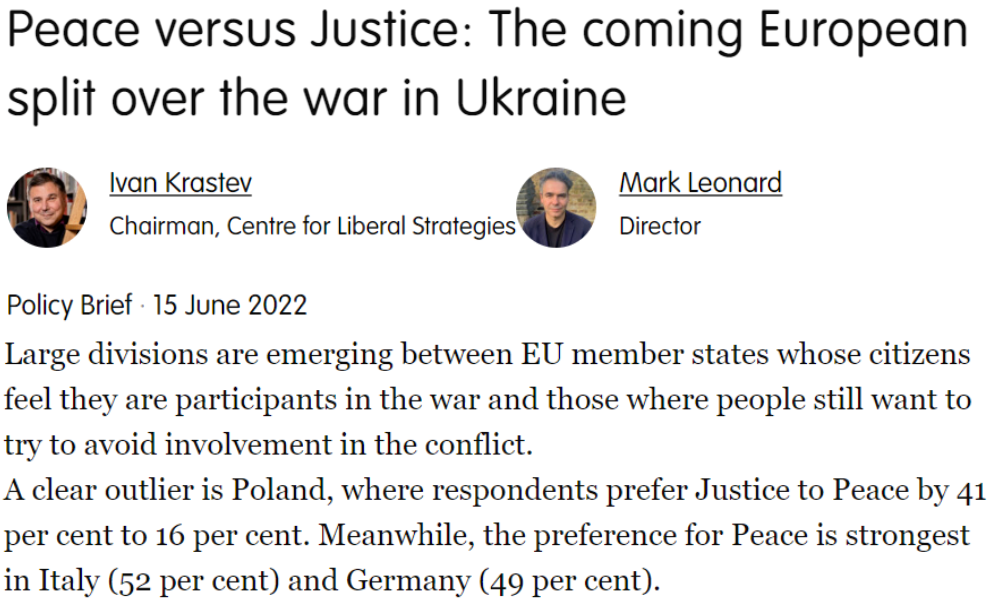 “欧洲对外关系委员会”官网:由于俄乌冲突持续,受西方国家对俄制裁反噬效应的影响,欧洲民众在如何应对俄乌冲突这一问题上的分歧正在加大。