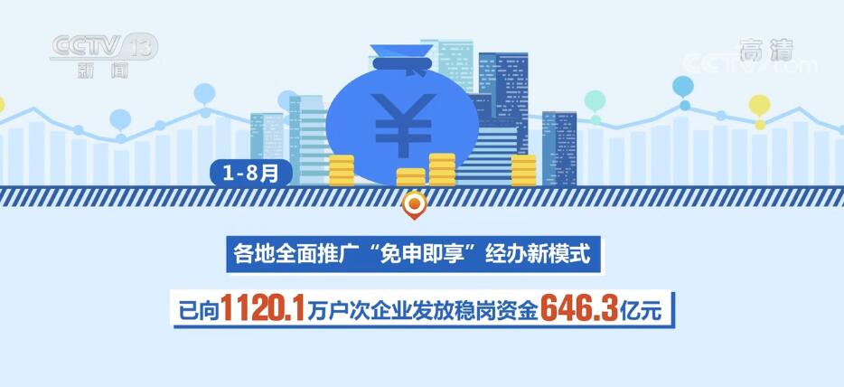 1—8月,各地全面推广“免申即享”经办新模式,已向1120.1万户次企业发放稳岗资金646.3 亿元。
