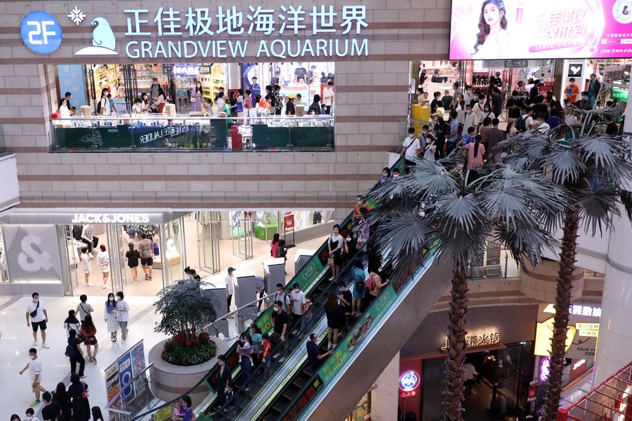 Customers visit a shopping mall in the Tianhe Road shopping area of Guangzhou, south China's Guangdong Province, Oct. 6, 2022. (Xinhua/Huang Guobao)