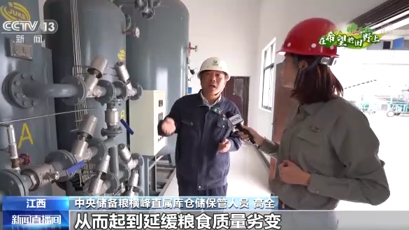 中央储备粮横峰直属库仓储保管人员 高全:当氮气浓度达到98%时,就能有效防治害虫,杀死害虫,从而起到延缓粮食质量劣变、“锁鲜”的目的。