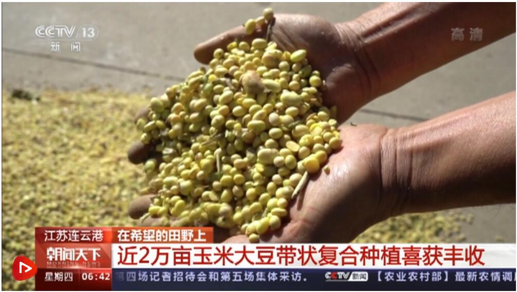 央视网消息:金秋时节,江苏连云港东海县近2万亩的玉米大豆带状复合种植迎来了收获季。多台收割机在田间来回穿梭,金灿灿的玉米和大豆堆满了田间地头,一片丰收的场景。