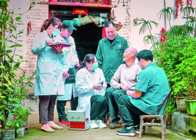 江苏省徐州市银行工作人员上门给老人送养老金。“奋进新时代”主题成就展图片