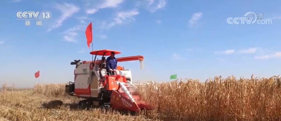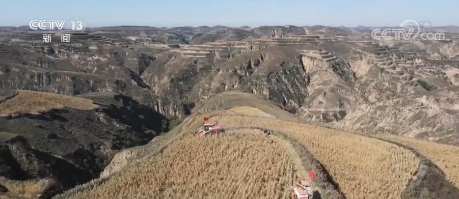 在米脂县万亩高标准农田里,收割机在谷田里来回穿梭,保证颗粒归仓。今年,当地雨水充沛,谷穗籽粒饱满、长势喜人,预计今年谷子亩产将达到800斤,每亩较去年增收900到1000元。