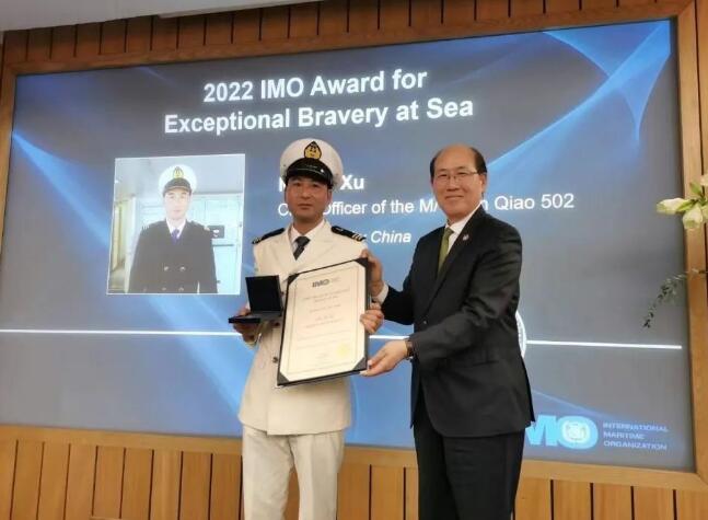 据了解,“海上特别勇敢奖”是国际海事组织设立的国际海事领域重要奖项,每年评选一次,主要表彰那些在面临生命危险情况下,采取特别勇敢的行动,以超乎寻常的勇气,设法救援海上人命、防止或最大程度减少对海洋环境损害的人们。国际海事组织在其官网上称:“鉴于这名中国大副英勇无畏的救人精神,授予其2022年国际海事组织‘海上特别勇敢奖’,以表彰他在营救两名船员时表现出的勇敢、决心和耐力。”据悉,该奖项今年共收到总计41个提名,最终获得“海上特别勇敢奖”奖章的仅许波一人。风高浪急之际跳入大海中救人,许波也害怕过。“我的妻子,我的儿子都等着我回家。但遇险的船员也一样,也有人等着他们回家。跑船的都是兄弟,能救的,我肯定去救!”许波说:“助人为乐是中华民族的传统美德,今后如果再遇到这样的情况,我依然会毫不犹豫地跳海救人,我相信其他船员也会果断地救人。”在许波看来,这个奖项不仅是对他个人和团队的鼓励,更是对中国海上搜救事业的肯定。“我在船上工作了二十多年,如何在海上救人是入行前必经的培训之一,正是这样系统完整的培训,才给了我们危难时刻救人的能力。”许波说。