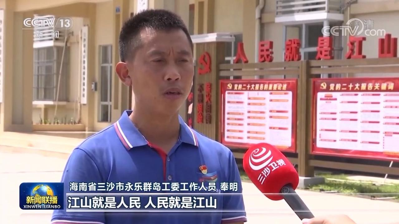 二十大精神鼓舞人心,催人奋进。在海南西沙永乐群岛的晋卿岛,近年来,基础设施建设不断完善,太阳能发电、安居工程等相继建成并投入使用,岛上的生活发生了巨大的变化。听了二十大代表、海南三沙市委书记袁光平在岛上进行的二十大精神宣传,大伙更加坚定了守好祖国南大门的决心。