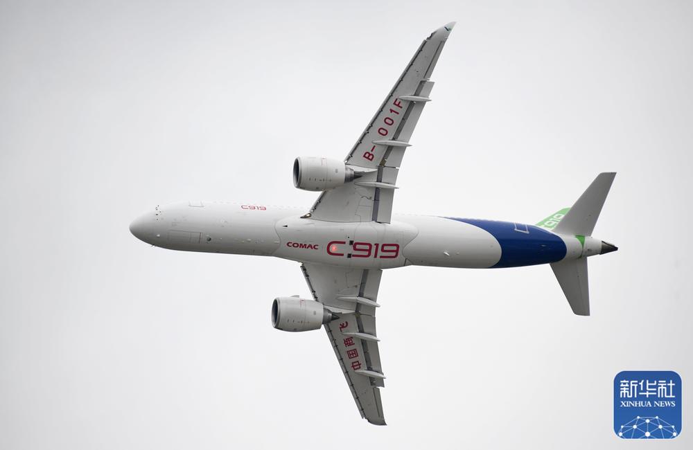 国产大飞机C919在第十四届中国航展上进行飞行展示(11月8日摄)。新华社记者 卢汉欣 摄