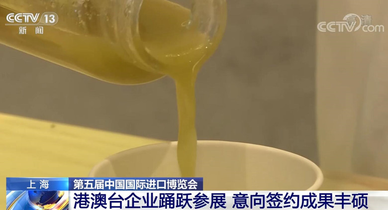 本届进博会的港澳台参展商中,既有连续五年参展的“老朋友”,也有携带创新产品首次亮相的“新朋友”。这家专门生产健康食品的企业今年第一次参加进博会,他们带来了一款低热量、高营养的果蔬液态沙拉,冲泡一杯250ml的沙拉,热量只有21卡,相当于一颗薄荷糖的热量。