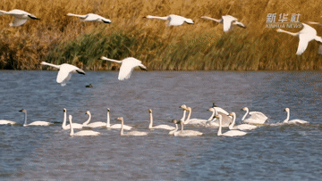 东方白鹳、大天鹅、白鹭等候鸟或追逐嬉戏,或休憩觅食,呈现出一派生机的动人景致。