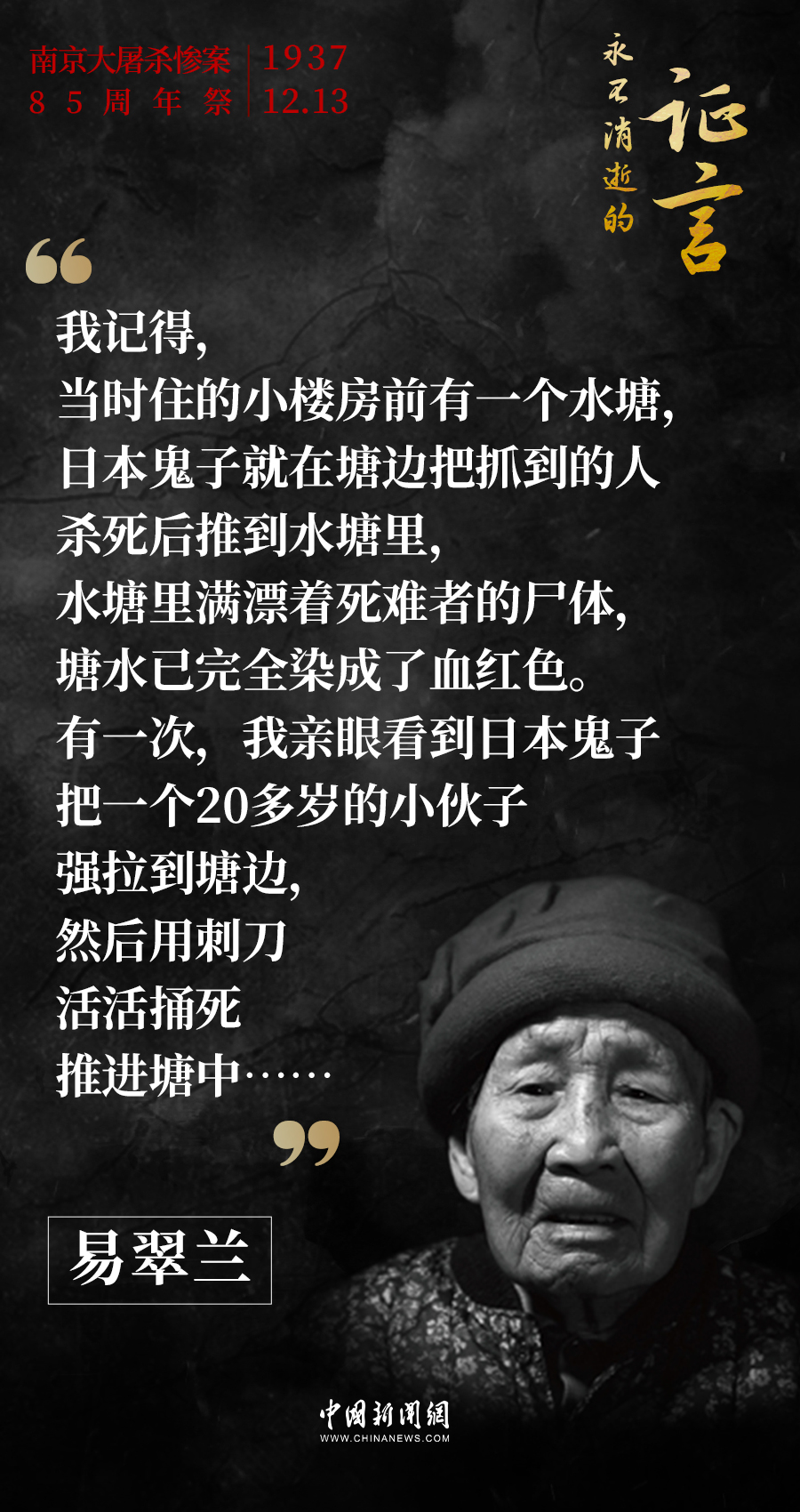 截至2022年12月5日,登记在册的南京大屠杀在世幸存者仅剩54位,幸存者们承载了民族苦难的记忆,他们是历史重要的证人。85年过去,历史见证人逐一离去,那一声道歉还要再等多久?历史不会被磨灭,证言永不会消逝↓↓↓