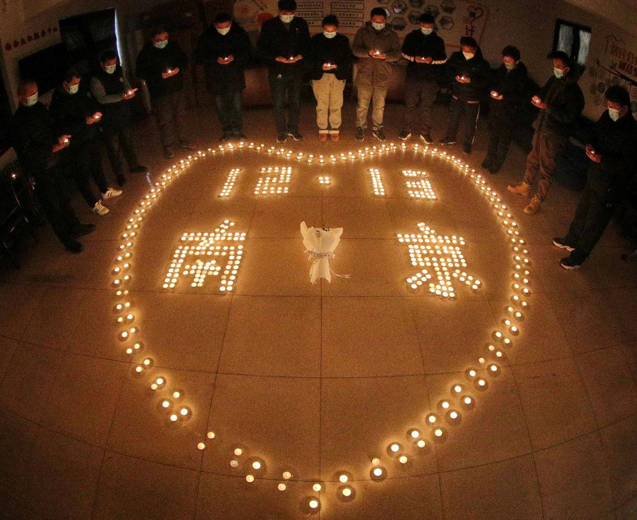 △河北秦皇岛,社区居民哀悼南京大屠杀死难者。