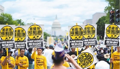图为今年6月民众在华盛顿国会大厦附近举行集会,抗议美国根深蒂固的种族歧视以及由此引发的经济不公等一系列社会问题。新华社记者 刘 杰摄