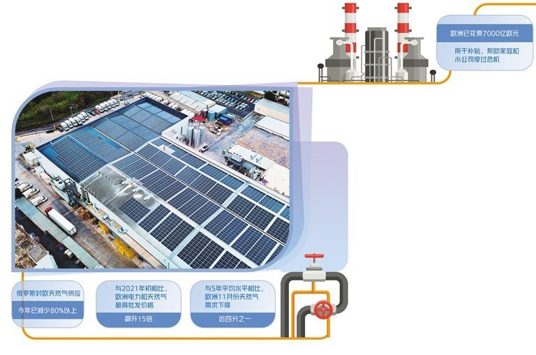 欧洲正在经历一个缺乏俄罗斯廉价天然气的冬天,这意味着更高的电力价格、能源短缺、物价飞涨和步步逼近的经济衰退。对供暖、工业制造和电力至关重要的俄罗斯天然气供应今年已减少了80%以上,由此带来的后果是,与2021年初的价格相比,欧洲电力和天然气的最高批发价格飙升了15倍之多,无论对普通消费家庭还是工业企业来说都是巨大的压力,而且这个问题还在恶化。