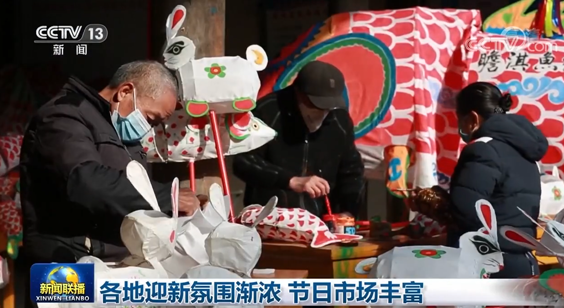 在湖北武汉、四川乐山,各大超市、批发市场已经开启“新年模式”,大红灯笼、春联、挂件等小商品摆到了显眼的位置;安徽歙县的鱼灯艺人正忙着赶扎各式传统花灯,鲤鱼灯、玉兔灯,琳琅满目。