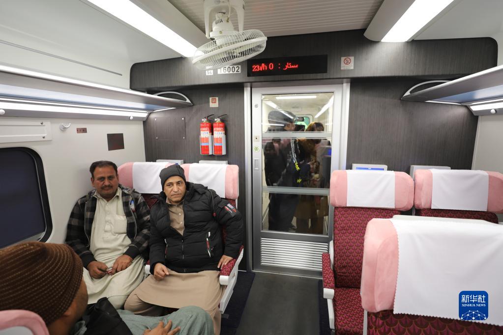 1月5日,在位于巴基斯坦拉合尔的从中国进口的宽轨客车里,巴基斯坦铁路公司的技术人员们正在体验乘坐列车。新华社记者 蒋超 摄