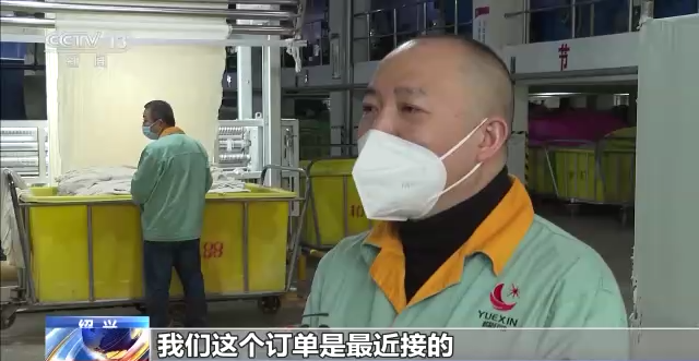 浙江越新印染有限公司二分厂负责人 杨朝兵:我们这个订单是最近接的,是我们年前必须要交给客户的。我们现在的生产都比较正常的,每天的生产量,成品的米数是18万米到20万米。