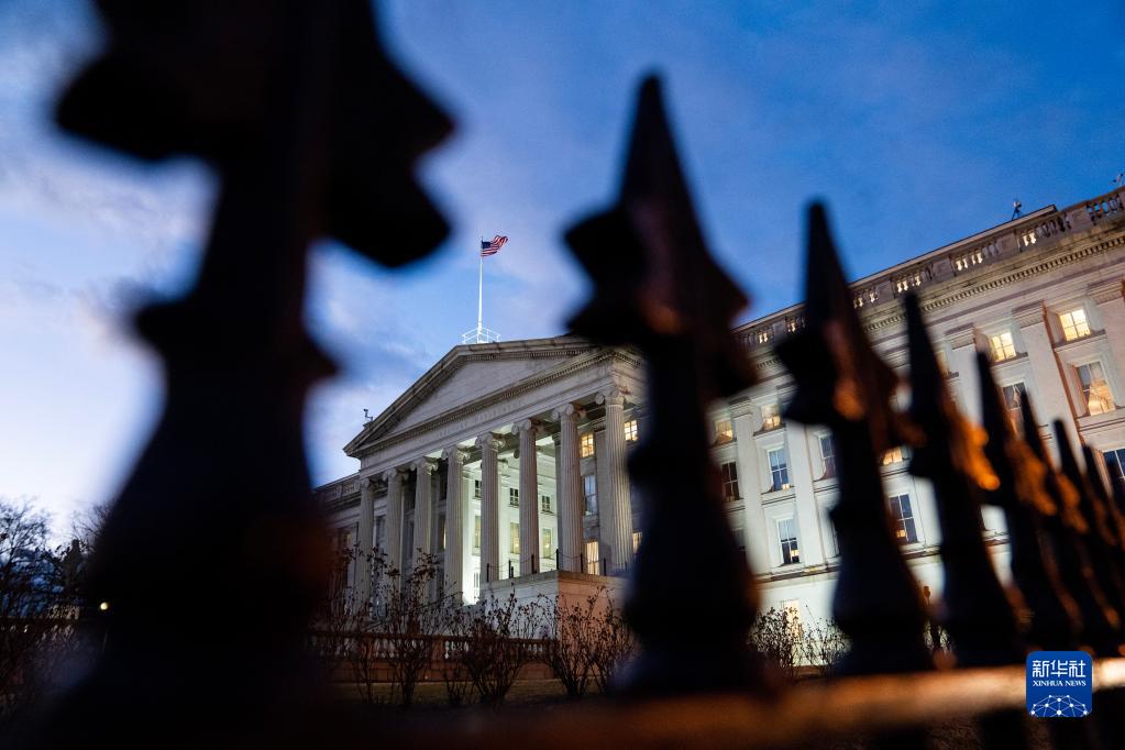 这是1月20日在美国首都华盛顿拍摄的财政部大楼。新华社记者 刘杰 摄