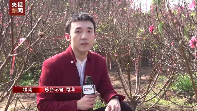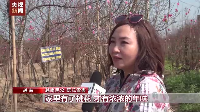 越南民众 阮氏雪杏:家里有了桃花,才有浓浓的年味,红色也是吉祥的色彩,因此它也是我最喜欢的“年花”。