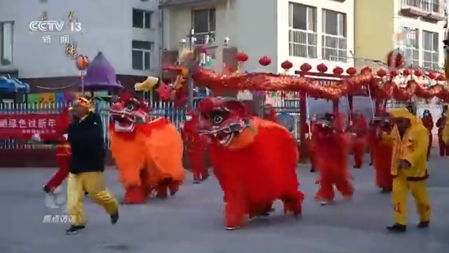 在银川市平伏桥新村,随着欢快的锣鼓声,两头雄狮威武亮相,踩着欢快的鼓点,时而翘首仰视,时而摇头摆尾,活灵活现。四只小狮子也淘气地抢夺着彩球,惟妙惟肖地表现出幼狮的可爱憨态。村民们身着喜庆的服装,舞动着绸扇,敲着锣鼓,共度新春佳节。