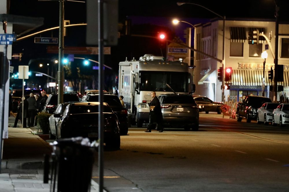 ↑1月22日凌晨,警察在蒙特雷帕克市的枪击事件现场工作。
