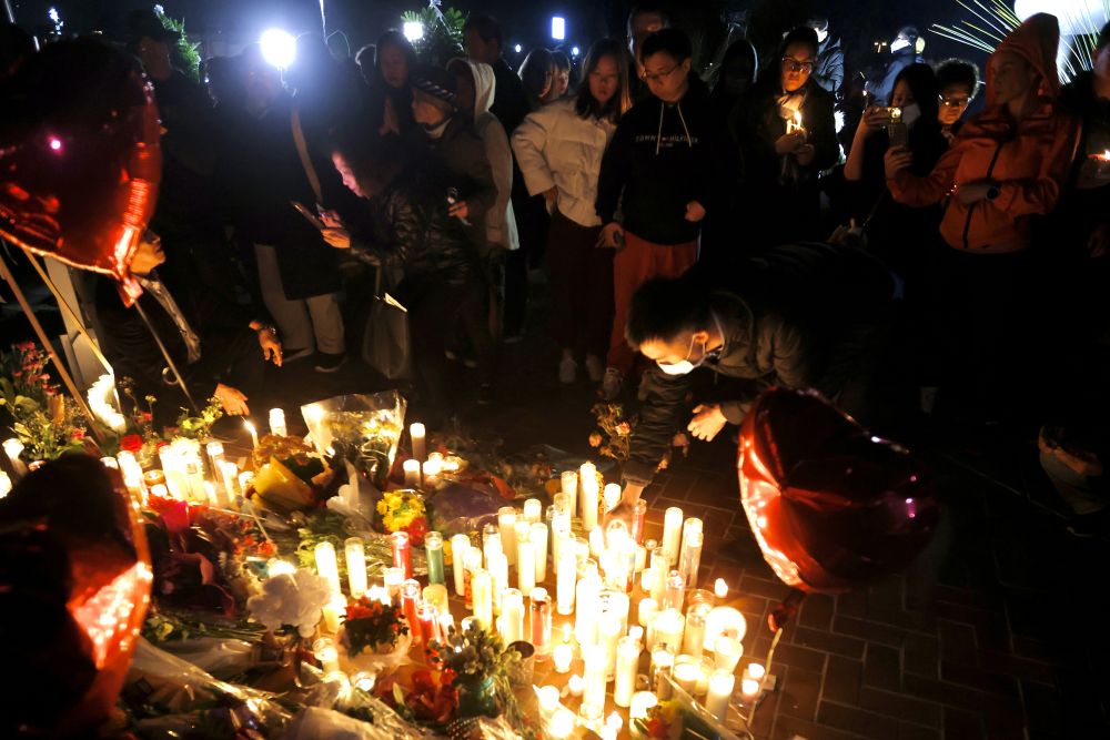 ↑1月27日晚,人们在美国加利福尼亚州半月湾市为枪击事件遇难者哀悼守夜。