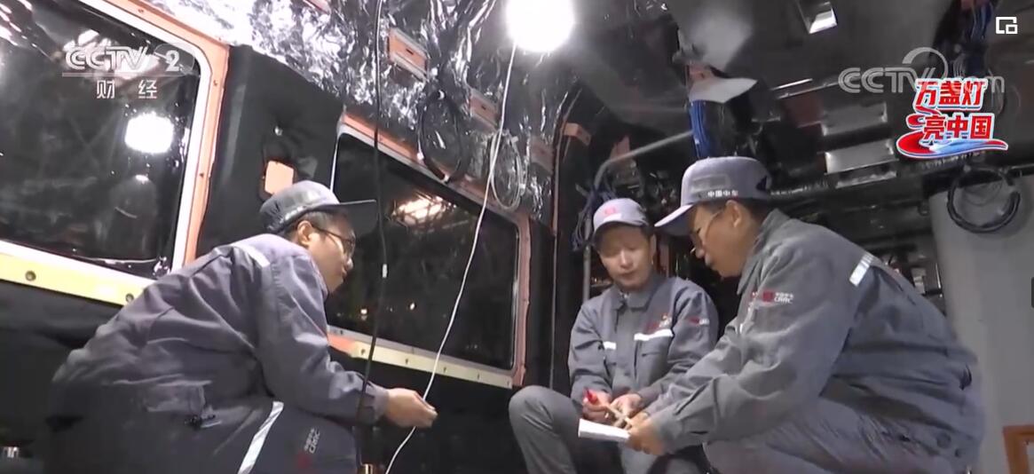 车灯亮起,测试完成,胡俊祥终于松了一口气。保证这几盏车灯背后的线路全部贯通,是他的主要工作之一。刚刚潇洒指挥调试的他其实只是一名普通的一线技师,还没等这批车发走,胡俊祥就和同事们开始了下一批车辆的装配。外观大气整洁的“复兴号”,内部结构装配的复杂程度却远超想象。